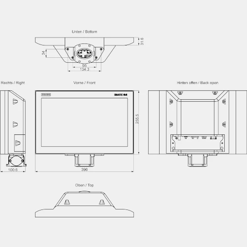 HMI SIMATIC HMI MTP1500 PRO 6AV2128-3QB27-1BX0 posiada wymiar: 396x255mm. Waga urządzenia wynosi 6,1kg.