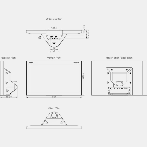 HMI 6AV2128-3XB27-0BX0 z montażem na wysięgniku z rozszerzeniami charakteryzuje się rozdzielczością 1920x1080 pix. Wyświetlacz w tym HMI Siemens ma wymiar 476x267,8.