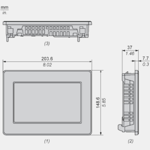 HMI Harmony GTUX HMIDT35X posiada wymiar: 203,6x148,6x37mm. Otwór montażowy 394x250mm. Waga urządzenia wynosi 1,3kg.