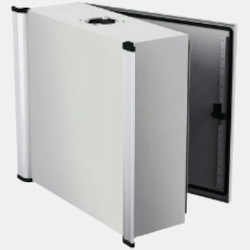 Obudowa panelu operatorskiego HMI BEC4420B.TR1 ETA posiada wymiary 400 x 400 x 200mm. Szafa sterownicza zawiera: obudowę, drzwi wraz z zamkiem 3mm, dwa uchwyty, wkręty montażowe. Pulpit został wykonany ze stali malowanej proszkowo. Obudowa BEC4420B.TR1 posiada stopień ochrony IP55. Model ten charakteryzuje się uchwytami montowanymi na obudowie oraz typem otworowania TR1. Pojemnik BEC4420B.TR1 został wyposażony w stały system zamykania montowany na drzwiach.