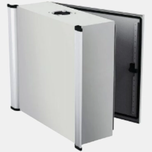 Obudowa panelu operatorskiego HMI BEC4420B.TR2 ETA posiada wymiary 400 x 400 x 200mm. Szafa sterownicza zawiera: obudowę, drzwi wraz z zamkiem 3mm, dwa uchwyty, wkręty montażowe. Pulpit został wykonany ze stali malowanej proszkowo. Obudowa BEC4420B.TR2 posiada stopień ochrony IP55. Model ten charakteryzuje się uchwytami montowanymi na obudowie oraz typem otworowania TR2. Pojemnik BEC4420B.TR2 został wyposażony w stały system zamykania montowany na drzwiach.