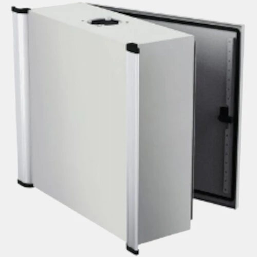 Obudowa panelu operatorskiego HMI BEC5420B.TR1 ETA posiada wymiary 500 x 400 x 200mm. Szafa sterownicza zawiera: obudowę, drzwi wraz z zamkiem 3mm, dwa uchwyty, wkręty montażowe. Pulpit został wykonany ze stali malowanej proszkowo. Obudowa BEC5420B.TR1 posiada stopień ochrony IP55. Model ten charakteryzuje się uchwytami montowanymi na obudowie oraz typem otworowania TR1. Pojemnik BEC5420B.TR1 został wyposażony w stały system zamykania montowany na drzwiach.