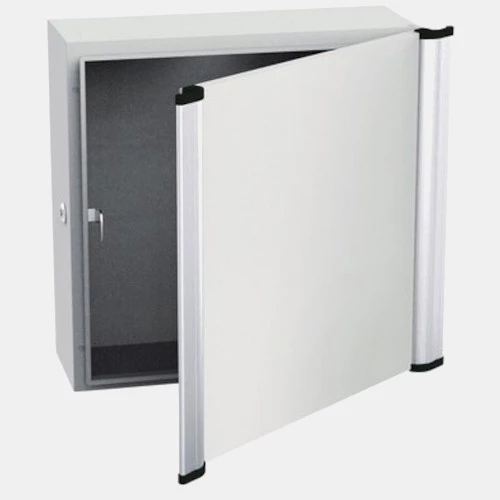 Obudowa panelu operatorskiego HMI BEC6620F.C ETA posiada wymiary 600 x 600 x 200mm. Szafa sterownicza zawiera: obudowę, drzwi wraz z zamkiem 3mm, dwa uchwyty, wkręty montażowe. Pulpit został wykonany ze stali malowanej proszkowo. Obudowa BEC6620F.C posiada stopień ochrony IP55. Model ten charakteryzuje się uchwytami montowanymi na drzwiach. Pojemnik BEC6620F.C został wyposażony w stały system zamykania montowany na obudowie.