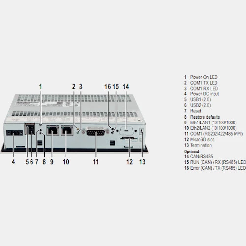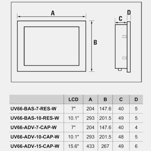 Panel HMI UV66-BAS-10-RES-W producenta Weidmuller serii Basic zasilany jest napięciem 24V DC i pobiera prąd w wysokości 0,5 A. Panel Weidmuller posiada dotykową rezystancyjną matryce o przekątnej 10,1 cala, a ponadto zawiera 16M kolorów. Panel operatorski UV66-BAS-10-RES-W dysponuje szybkim procesorem ARM Cortex A9 1 GHz NXP® i.MX6 DualLite z systemem operacyjnym Linux wraz z przeglądarką HTML5. Dodatkowo posiada pamięć Flash 4GB oraz 1GB pamięci RAM. Atutem panelu HMI Basic Weidmuller są wbudowane 2 porty Ethernet ze złączem RJ45 2 gniazda USB 2.0 typu B oraz RS-232/485/422 Panel HMI Weidmuller zaprojektowany został w obudowie metalowej o stopniu ochrony IP66 od frontu i wymiarach 201,5x 293 x 49 mm. Z kolei wagę produktu UV66-BAS-10-RES-W Basic producent podaje na 2,35 kg. UV66-BAS-10-RES-W został przystosowany do pracy w temperaturze od 0...50 stopni Celsjusza.