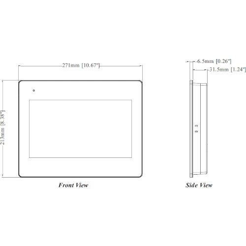 Wymiary urządzenia to: 271 x 213 x 36,4 mm. Waga panelu jest równa 1,1,2 kg. Weintek deklaruje żywotność podświetleni urządzenia do 50 000 godzin.
