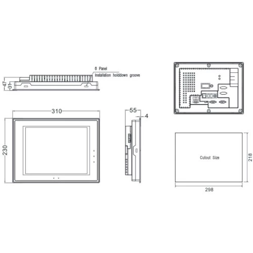 Panel operatorski HMI MT4513TE producenta Kinco o mocy 8W zasilany jest napięciem 24V DC. HMI został wyposażony w dotykową matrycę TFT o przekątnej ekranu 10,4 i rozdzielczości 800x600. Ponadto panel HMI MT4000 Kinco dysponuje bogatą ilością kolorów 65536 wraz z podświetleniem LED o żywotności do 5000 h i jasności 300 cd/m2. Panel dotykowy MT4513TE pracuje w oparciu o wydajny procesor 32-bit RISC CPU 800 MHz. Producent zastosował w urządzeniu szereg funkcjonalności takich jak: gniazdo USB, port Ethernet, CANopen, RS232, RS485 oraz zegar czasu rzeczywistego RTC. HMI Kinco wykonany został w wymiarach 230 x 310 x 50 mm i wadze 2. Natomiast otwór montażowy dla MT4513TE wynosi 298x218 mm. Producent przystosował panel HMI do pracy w temperaturze 0...50°C. Konfiguracja MT4513TE odbywa się za pomocą darmowego narzędzia HMIware.