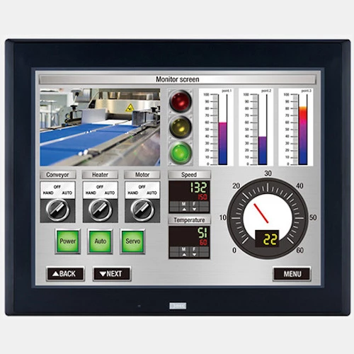 Panel HMI HG5G-VFXT22MF-Bproducenta IDEC o zasilaniu 24VDC. Panel został wyposażony w 15" ekran z kolorową matrycą TFT LCD o rozdzielczości 1024x768 pikseli oraz jasności na poziomie 800 cd/m2. Producent deklaruje żywotność urządzenia na poziomie 70 000h. Panel HG3G IDEC został wyposażony w szereg portów komunikacyjnych: RS232, RS485/422, Ethernet, USB, USB mini-B, slot kart SD, Webserver. Dodatkowo ten model został wyposażony w wyjście audio oraz wejście video. HG5G-VFXT22MF-B obsługuje liczne protokoły komunikacyjne, w tym Modbus RTU/TCP. Współpracuje z większością urządzeń dostępnych na rynku automatyki przemysłowej. Dodatkowo panel HMI posiada możliwość programowania ekranów. Użytkownik ma możliwość tworzenie ekranów bazowych z opcją nakładania lub ekranów w formie wyskakujących okien tzw. pop up.