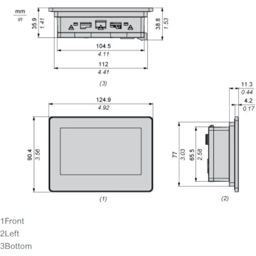 Wymiary panelu to: 38,8 x 124,9 x 90,4 mm, natomiast waga produktu wynosi 0,22 kg. Stopień ochrony pulpitu zdalnego Schneider Electric został określony na IP65 od frontu, oraz IP20 z drugiej strony obudowy.
