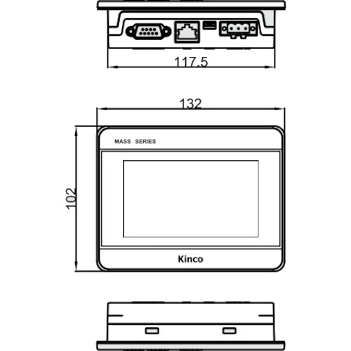 Panel HMI M2043HE Kinco MASS o napięciu zasilania 10,8...28 V DC. Moc HMI wynosi 2W przy 24 V DC. HMI MASS M2 M2043HE o przekątnej ekranu 4,3" i rozdzielczości 800x480 px. Obszar wyświetlania dla tego modelu wynosi 95,04mm z 53,86mm. HMI Kinco M2043HE został wyposażony w port Ethernet, 3 porty szeregowe, USB. Szeroki kąt widzenie 80L/80R/80U/80D wpływa na komfort użytkowania. Wydajny procesor ARM Ccortex-A7 Dual Core 1GHz oraz 256 MB pamięci Flash zapewniają płynność działania. Obudowa panelu HMI MASS M2043HE została wykonana z tworzywa w jej wymiar to: 132x102x33 mm, a waga wynosi 0,21kg. Konfiguracja HMI Kinco MASS odbywa się przy pomocy oprogramowania Kinco DTools w wersji V4.0 lub nowszej.