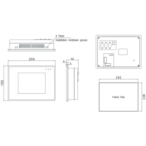 Panel operatorski HMI MT4310C producenta Kinco o mocy 4W zasilany jest napięciem 24V DC. HMI został wyposażony w dotykową matrycę TFT o przekątnej ekranu 5,6 i rozdzielczości 320x234 pix. Ponadto panel HMI MT4000 Kinco dysponuje bogatą ilością kolorów 65536 wraz z podświetleniem LED o żywotności do 5000 h i jasności 300 cd/m2. Panel dotykowy MT4310C pracuje w oparciu o wydajny procesor 32-bit RISC CPU 400 MHz. Producent zastosował w urządzeniu szereg funkcjonalności takich jak: gniazdo USB, port RS232, RS485 oraz zegar czasu rzeczywistego RTC. HMI Kinco wykonany został w wymiarach 150 x 204 x 52 mm i wadze 0,75 kg. Natomiast otwór montażowy dla MT4310C wynosi 192x138 mm. Producent przystosował panel HMI do pracy w temperaturze 0...50°C. Konfiguracja MT4310C odbywa się za pomocą darmowego narzędzia HMIware.