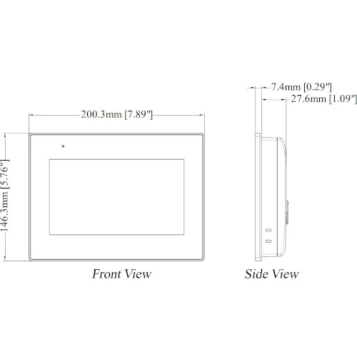 Wymiary urządzenia to: 200,3 x 146,3 x 35 mm. Waga panelu jest równa 0,6 kg. Weintek deklaruje żywotność urządzenia do 30000 godzin.