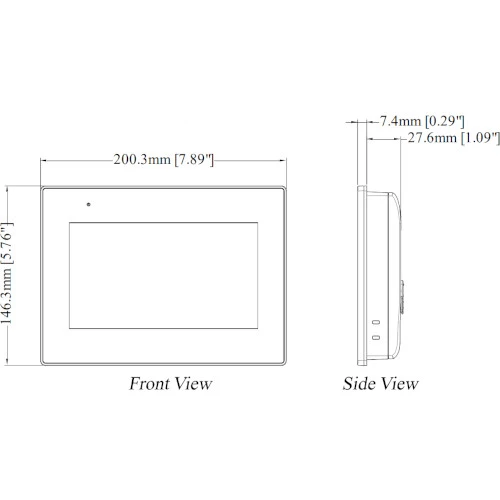 Wymiary urządzenia to: 200,3 x 146,3 x 35 mm. Waga panela jest równa 0,6 kg. Weintek deklaruje żywotność urządzenia do 30000 godzin.