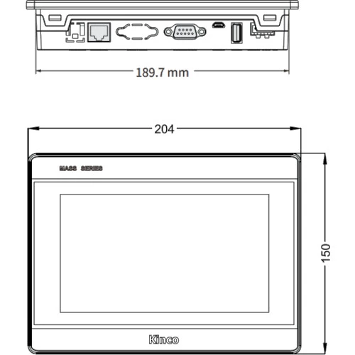 Panel HMI M2070HE Kinco MASS o napięciu zasilania 10,8...28 V DC. Moc HMI wynosi 4,2W przy 24 V DC. HMI MASS M2 M2070HE o przekątnej ekranu 7" i rozdzielczości 1024x600 px. Obszar wyświetlania dla tego modelu wynosi 154,21mm z 85,92mm. HMI Kinco M2070HE został wyposażony w port Ethernet, 3 porty szeregowe, USB. Szeroki kąt widzenie 85L/85R/85U/85D wpływa na komfort użytkowania. Wydajny procesor ARM Ccortex-A7 Dual Core 1GHz oraz 256 MB pamięci Flash zapewniają płynność działania. Obudowa panelu HMI MASS M2070HE została wykonana z tworzywa w jej wymiar to: 204x150x37,2 mm, a waga wynosi 0,5kg. Konfiguracja HMI Kinco MASS odbywa się przy pomocy oprogramowania Kinco DTools w wersji V4.0 lub nowszej.