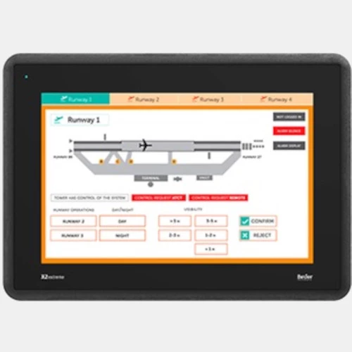 Panel HMI X2 extreme 12 Beijer Electronics o przekątnej ekranu 12". Dotykowy panel Beijer 640014305 zasilany jest napięciem 24 VDC a maksymalny pobór mocy dla niego wynosi 16W. Panel dysponuje wyświetlaczem TFT LCD z podświetleniem LED oraz rezystancyjną matrycą dotykową. Rozdzielczość urządzenia wynosi 1280x800 px, zaś jasności 500 cd/m2. HMI X2 extreme 12 Beijer został wyposażony w 1 port Ethernet, 1 port CAN,1 port RS232, 1 port RS422/RS485,1 złącze 9pin DSUB, 2 złącza USB oraz slot kart SD oraz SDHC. X2 EXTREME 12 posiada system i.MX6DualLite, Dual Cortex-A9 800MHz 512kBL2cache, 1GB pamięci RAM oraz 2 GB pamięci FLASH z możliwością rozbudowy przy pomocy karty SD. HMI 640014305 Beijer może pracować w zakresie temperatur od -30 do +70 stopni Celsjusza, stopień ochrony od frontu wynosi IP66.