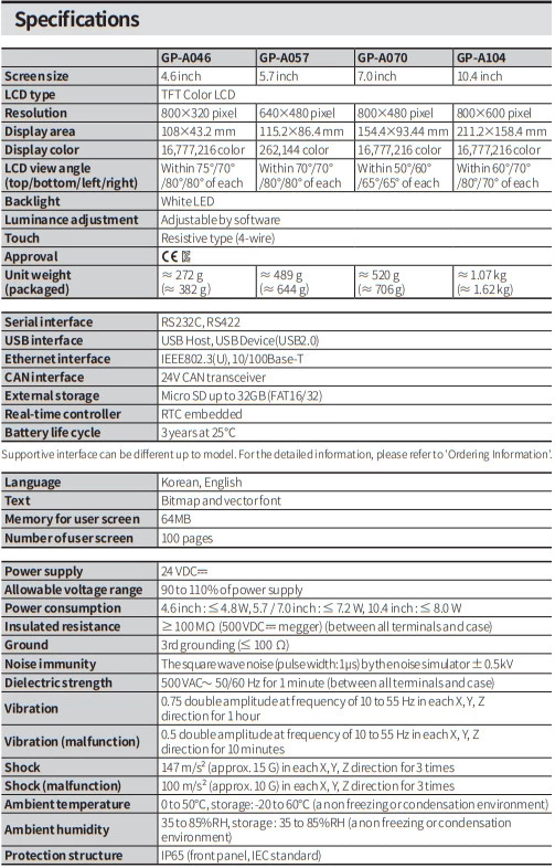 Panel HMI 7" GP-A070-T9D7 Autonics