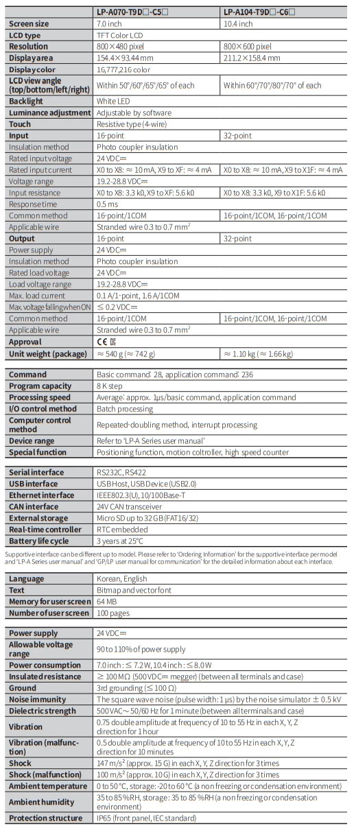 Panel HMI 7" LP-A070-T9D6-C5T Autonics