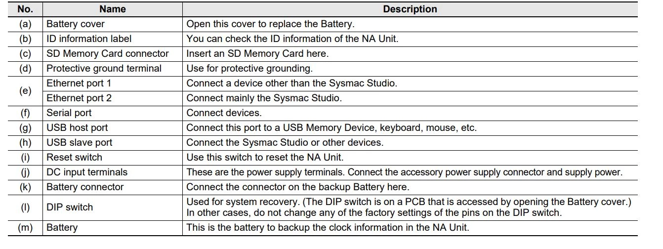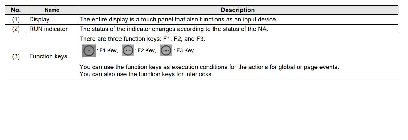 Panele HMI serii NA zostały wyposażone w narzędzie do rozwiązywania problemów, które pozwala na monitorowanie i usuwanie błędów, zdarzeń dotyczących sterowników z serii NJ/NX/NY, jak również błędów i zdarzeń zdefiniowanych przez użytkownika. Nie ma konieczności korzystania z oprogramowania pomocniczego uruchamianego na komputerze. Interfejsy mogą być konfigurowane dla konkretnego pracownika, można przy tym ustawić różne poziomy dostępu i hasła. Panele posiadają wiele innych funkcji - współdzielenie zmiennych sterowników z serii NJ/NX/NY w aplikacji interfejsu maszyny, pisanie skryptów w języku Visual Basic, zintegrowane testowanie dzięki równoczesnej symulacji programów sterownika i interfejsu HMI, wyświetlanie oraz obsługa interfejsu HMI zainstalowanego w zakładzie przy pomocy tabletu z dostępem do sieci Ethernet lub Wi-Fi, panel daje możliwość ograniczania dostępu za pomocą urządzeń zdalnych i zarządzania dostępem zdalnym dostępu.