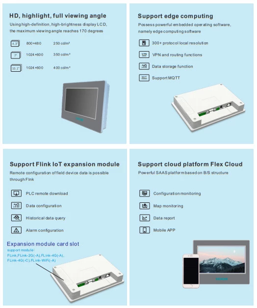Panele HMI Veichi dedykowane do zastosowań przemysłowych. W ofercie dostępne są 4 wielkości paneli HMI 4,3"; 7"; 10,1"oraz 15,6". Panele dotykowe Veichi VI20 obsługują ponad 300 protokołów komunikacyjnych co pozwala na komunikację z niemal wszystkimi urządzeniami dostępnymi na rynku automatyki przemysłowej.